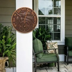 Whitehall Products 14 in. Antique Copper Pinecone Thermometer and Clock