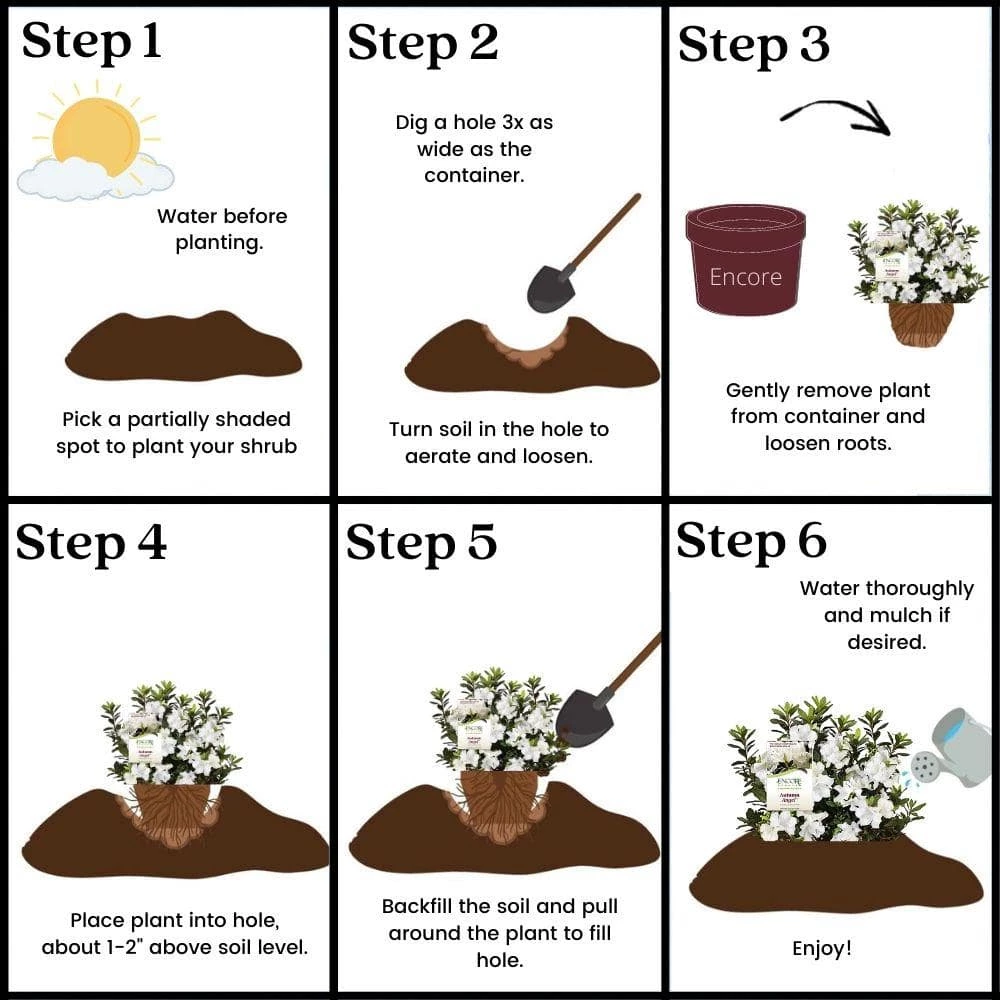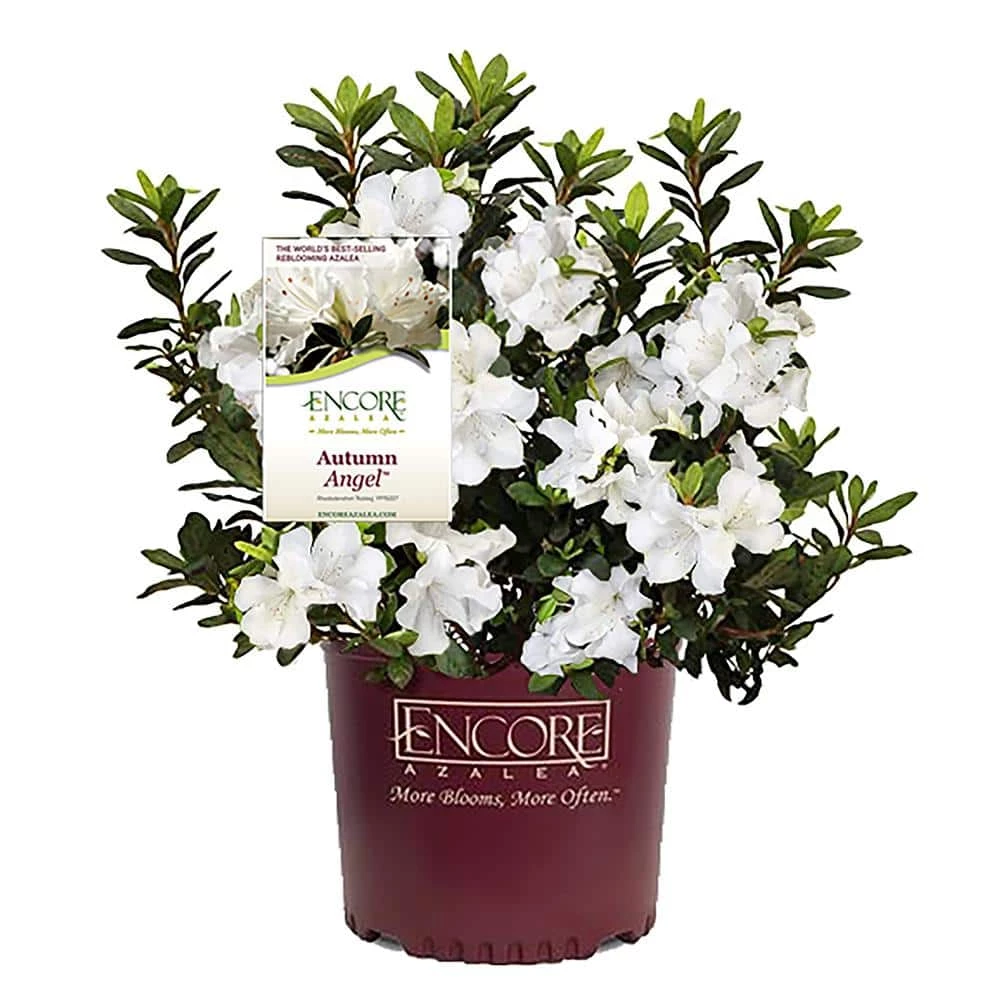 Autumn Angel Encore Azalea is a compact plant with pure white flowers. Encore Azaleas enrich garden designs, combining well with other plants. Landscape options become easy and eye-catching when including Encore Azaleas. Perfect for containers, landscapes, and as accents!