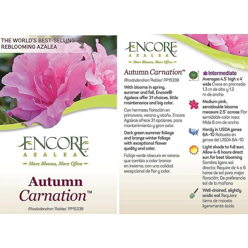 Enhance your garden space with this autumn carnation shrub. It combines well with other plants for variety. Great for containers, landscapes and as garden accents, this partial sun plant offers semi-double pink flowers in spring, summer and fall, creating decorative charm.