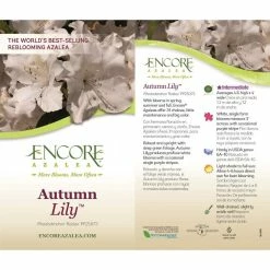 The Autumn Lily has rich white blooms with occasional purple stripes in the throat of the flower. This Encore features a huge initial bloom in spring and then reblooms through summer and fall (and beyond in particularly warm climates). The blooms will keep on coming, with no deadheading required.Additionally, the Autumn Lily’s trademark soft white blooms sit atop shiny green foliage that remains evergreen all year long. New foliage emerges a gorgeous light green in spring before maturing to a glossy dark green.This white blooming azalea was bred for its cold hardiness and chosen for its naturally rounded growth habit.The Autumn Lily Encore Azalea reaches 4.5′ H and 4′ W, making it a great choice for a low-maintenance hedge or border.The Encore Lily makes a fantastic accent, foundation plant, or mass planting. Furthermore, the compact growth habit of the Encore Azalea Autumn Lily truly shines in a container garden.