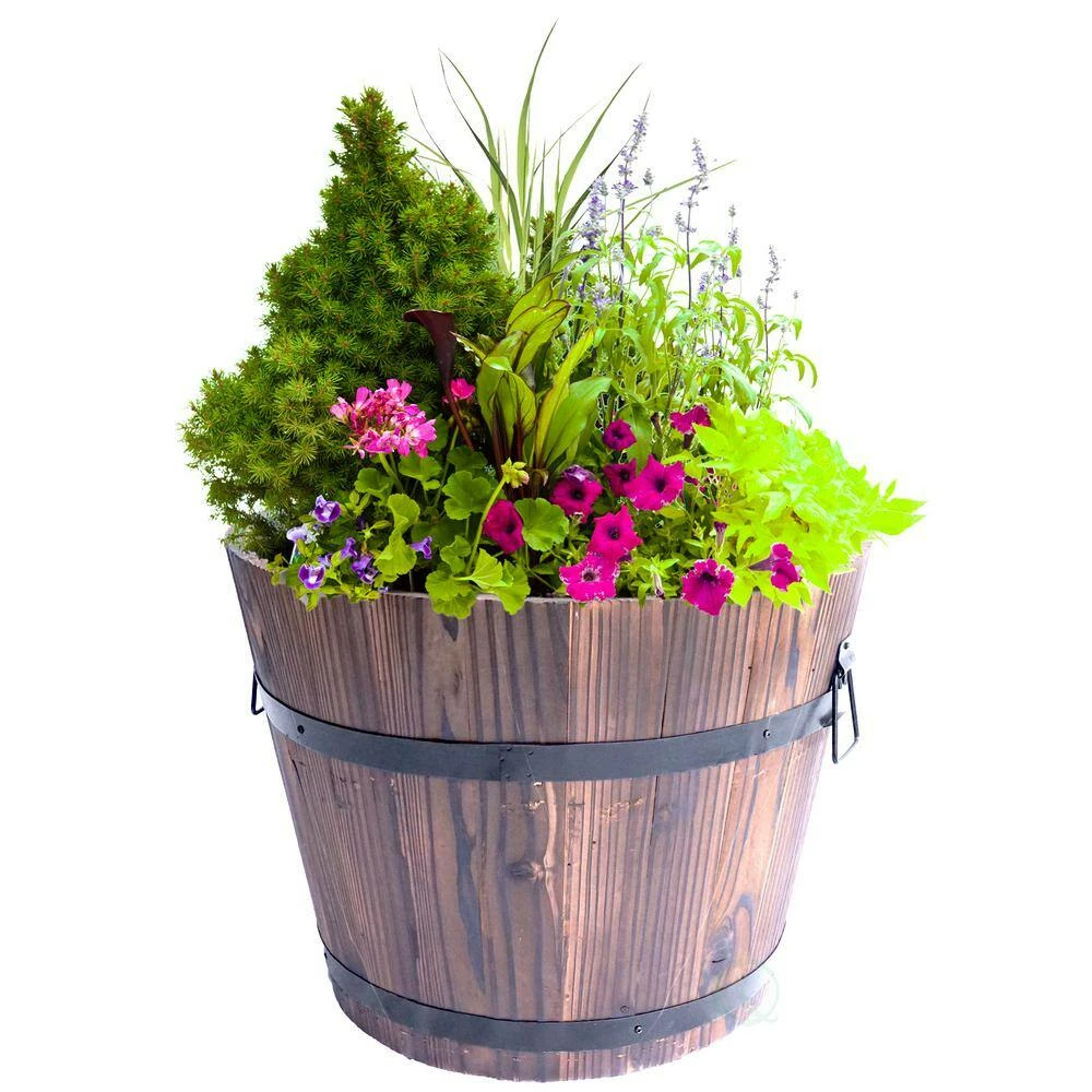 Plant your flowers in these wooden planters, which look like authentic whiskey barrels. It will mix the scent of the 1700 ft. s with the fresh smell of your flowers. Measurements include: 14.5 in. Dia x 12 in. H.