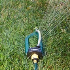 Oscillating sprinklers are the ideal solution for watering lawns. The quiet operations and gentle sprinkling action provides soaking moisture to small to mid-sized areas. The spray is soft enough for newly seeded areas. Built to last, this sprinkler is designed to add life to your lawn for seasons to come.