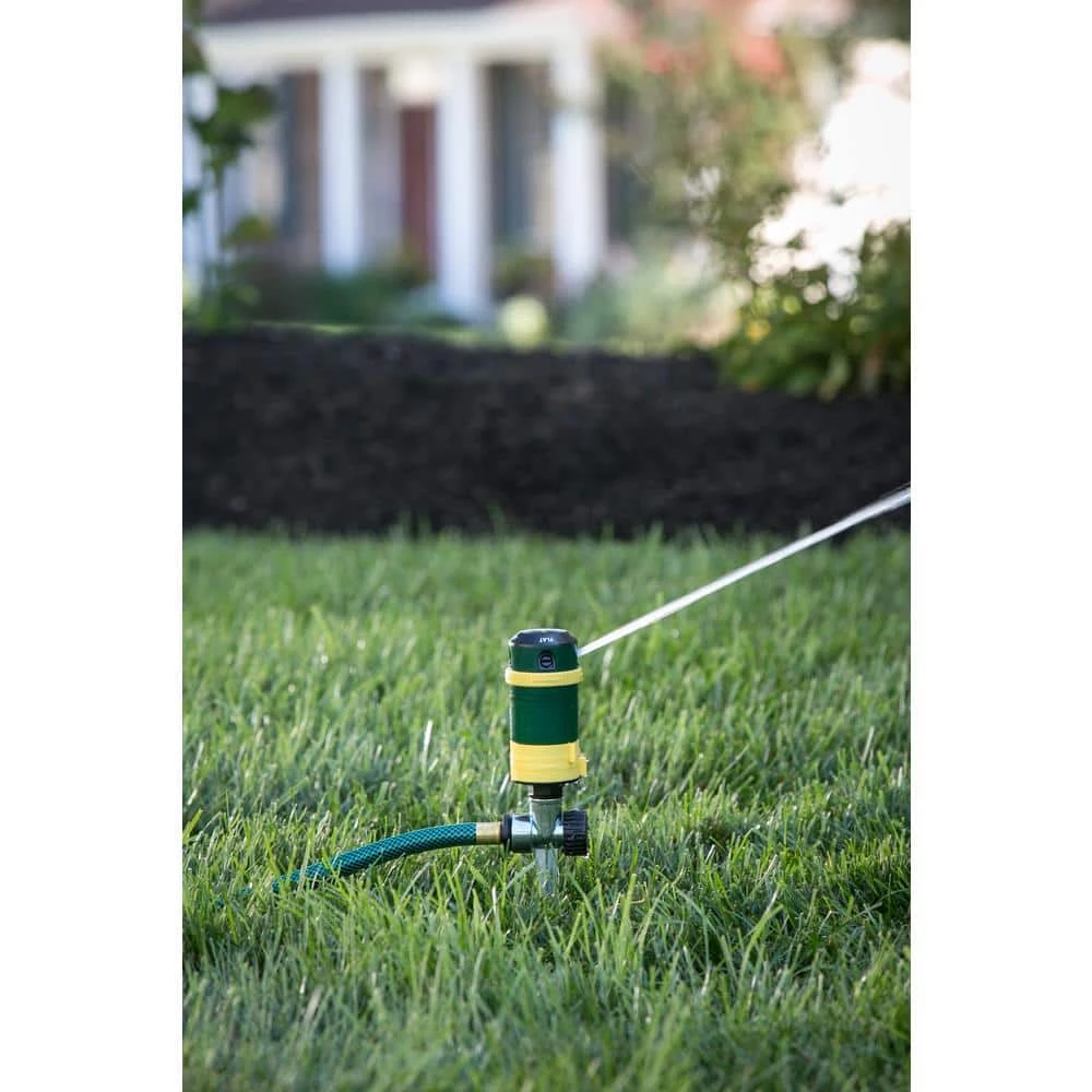 The Turbo Drive Rotary Sprinkler is ideal for watering large lawn and garden areas. The nearly silent operation won’t disturb neighbors. The sturdy metal spike works well even in hard soils and allows for multiple units to be connected in sequence.