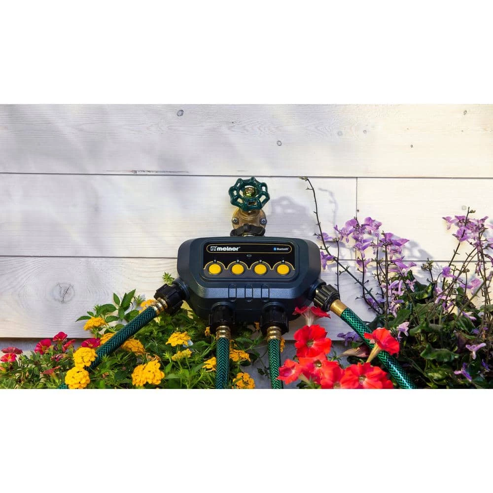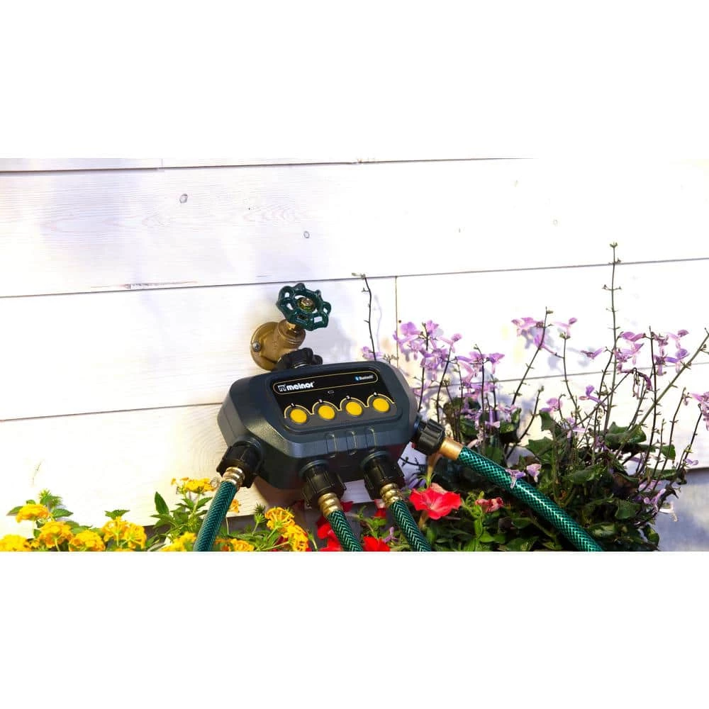 Manage your lawn and garden watering through your smart device for when life gets busy. No more wasting water when you forget to turn off the sprinkler or dead flowers from a missed watering. Each of the 4 valves act like a separate timer letting you assign an independent schedule for each zone and monitor the program directly from your smart device. The app displays when each zone will start watering next. Use the Watering Delay function to instantly pause the schedule when rain is in the forecast. Switch over to Manual Mode through the app or directly at the valve unit to turn on the water whenever you need it.