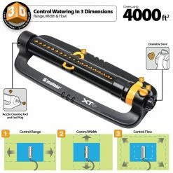 - TwinTouch controls adjust the width and range of the watering pattern to cover the whole yard or a narrow flower bed