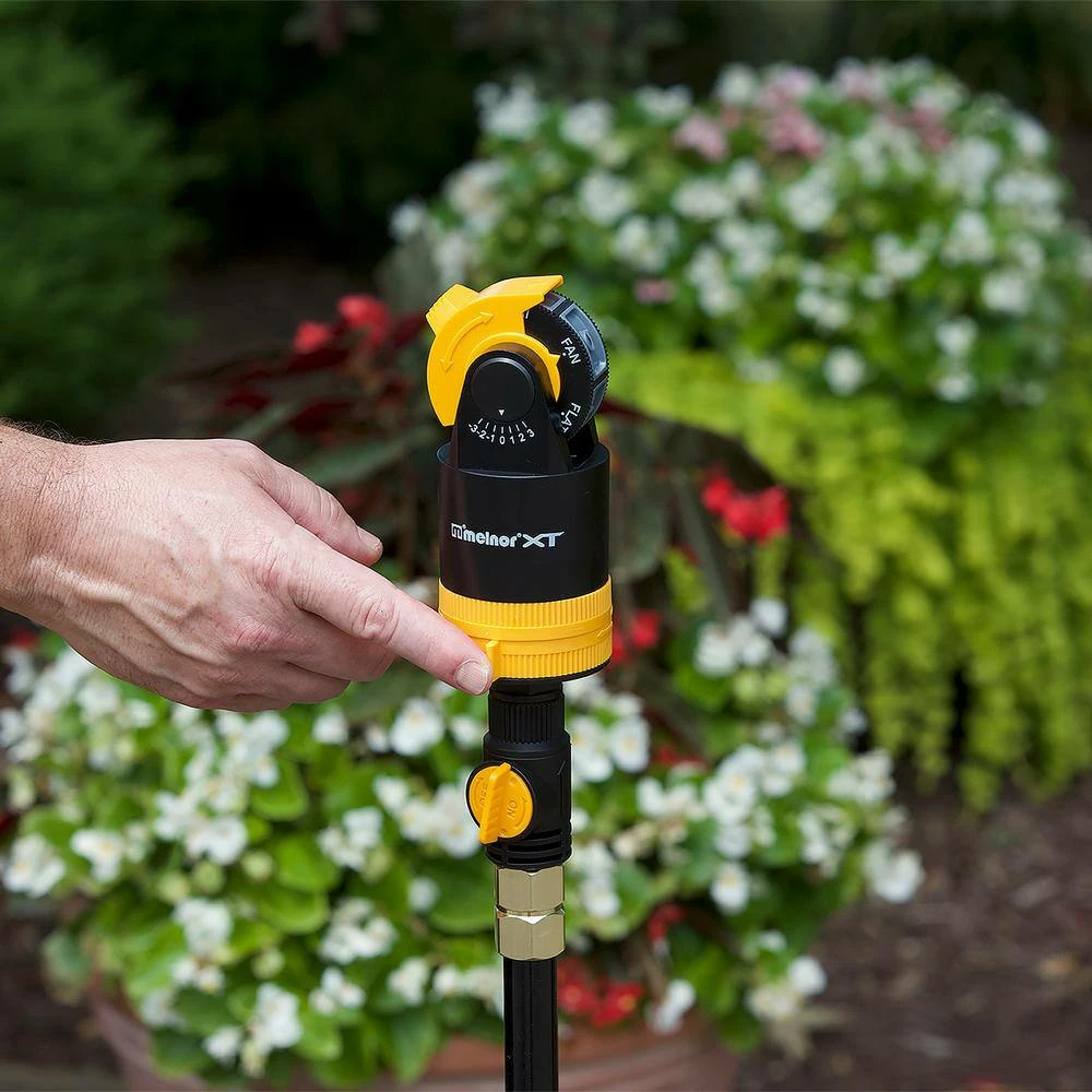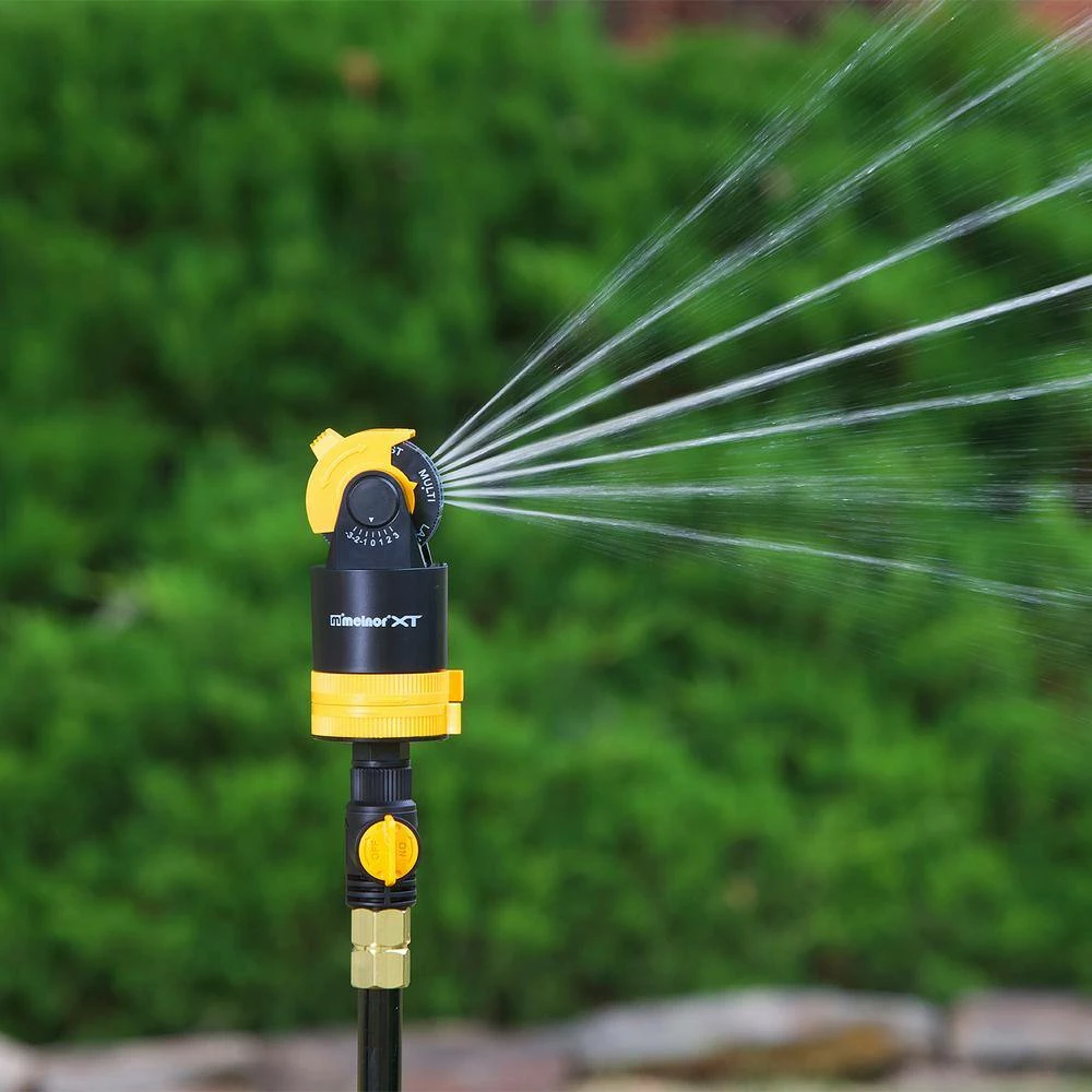- Multi-adjustable controls to set watering distance and circular coverage area