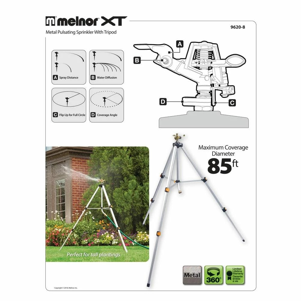 Take watering to a new height, with the 9,620 Pulsating Sprinkler. The innovative tripod design waters a larger area great for big lawns or gardens. The durable construction will provide long term use, and season after season of watering.