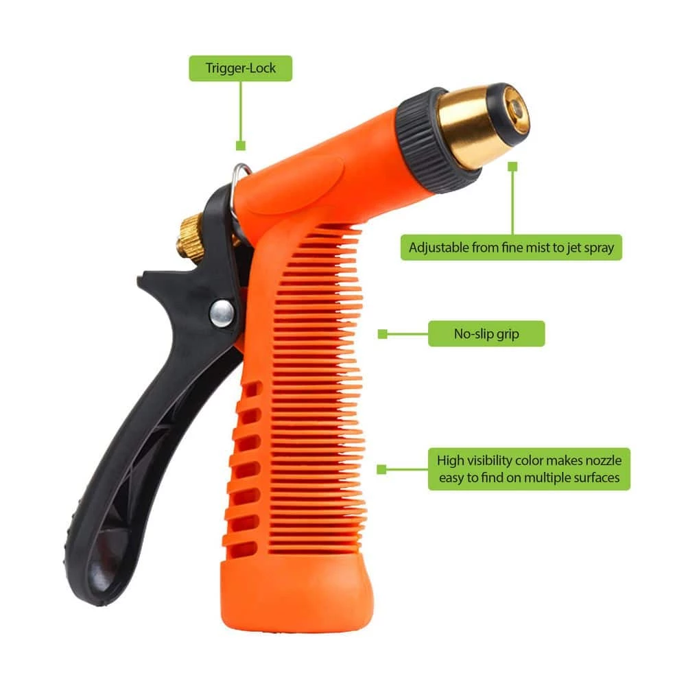Never lose another nozzle in your bedding its always EZ to find. This Hi-Vis Nozzle features an adjustable tip that sprays from mist to jet so you can tackle a variety of watering jobs. The nozzle s trigger lock allows for continuous spraying. The comfortable rubber grip feels good in the hand while the rear trigger design is easy to use.