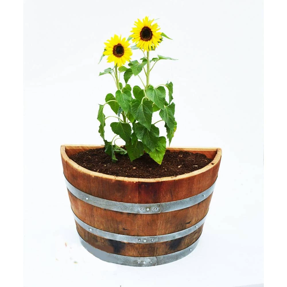 Wine barrel wall planters are designed to have a flat back to stand against a wall for conserving space. We use authentic oak wood wine barrels with quality and value in mind for your gardening needs. Unlike whiskey barrels, classic wine barrels are much better built and wrapped with three galvanized steel bands to prevent rust which is seen frequently in whiskey barrels. Color and appearance may vary due to the reclaimed material used.