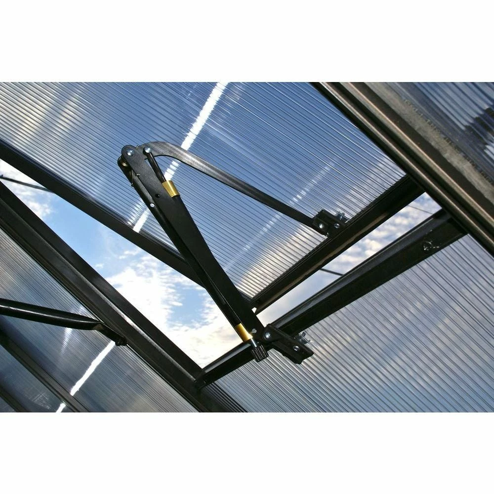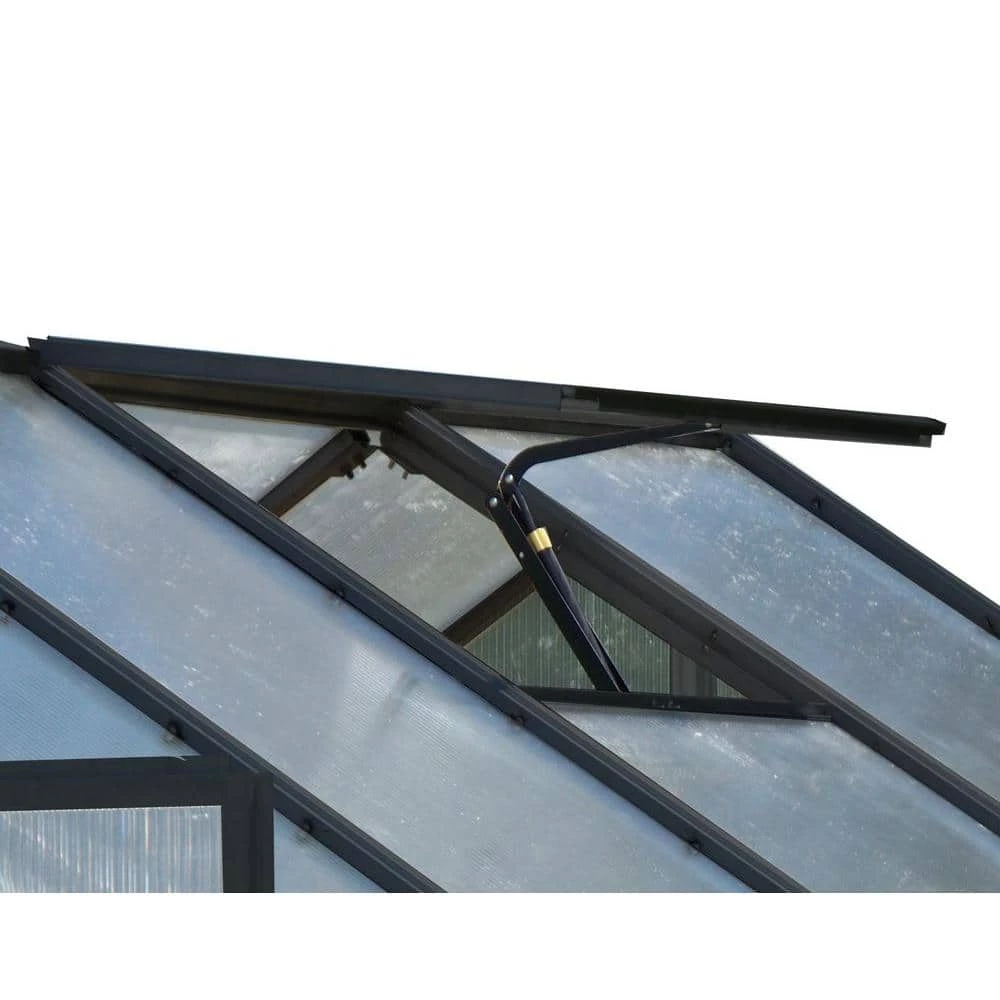 The MONT Automatic Roof Vent is designed for simple and easy installation on existing MONT Greenhouses. This Roof Vent is designed for black framed MONT Greenhouses. The Automatic Roof Vent is made from the same high quality aluminum, polycarbonate, and includes the same professional grade automatic vent opener as the MONT Greenhouse comes standard with.