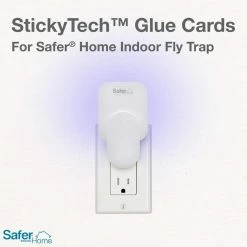 With Safer Home Indoor Plug-In Fly Trap Refill Packs, you can enjoy non-stop protection from flies, fruit flies, moths, gnats, and more. Simply peel the backing off the StickyTech glue card and insert it into the trap. Plug the trap into a standard outlet near common insect hotspots, including near houseplants, exterior doors, pet areas, in kitchens, bedrooms, and other areas of your home. Once drawn in by the light of the trap, insects get stuck fast to the StickyTech Glue Cards and are securely held until the time of disposal. The unique glue placement on the wall side of the card keeps insects trapped and out of sight. StickyTech Glue Cards contain no chemical insecticides and are the ideal choice for homes with children and pets.