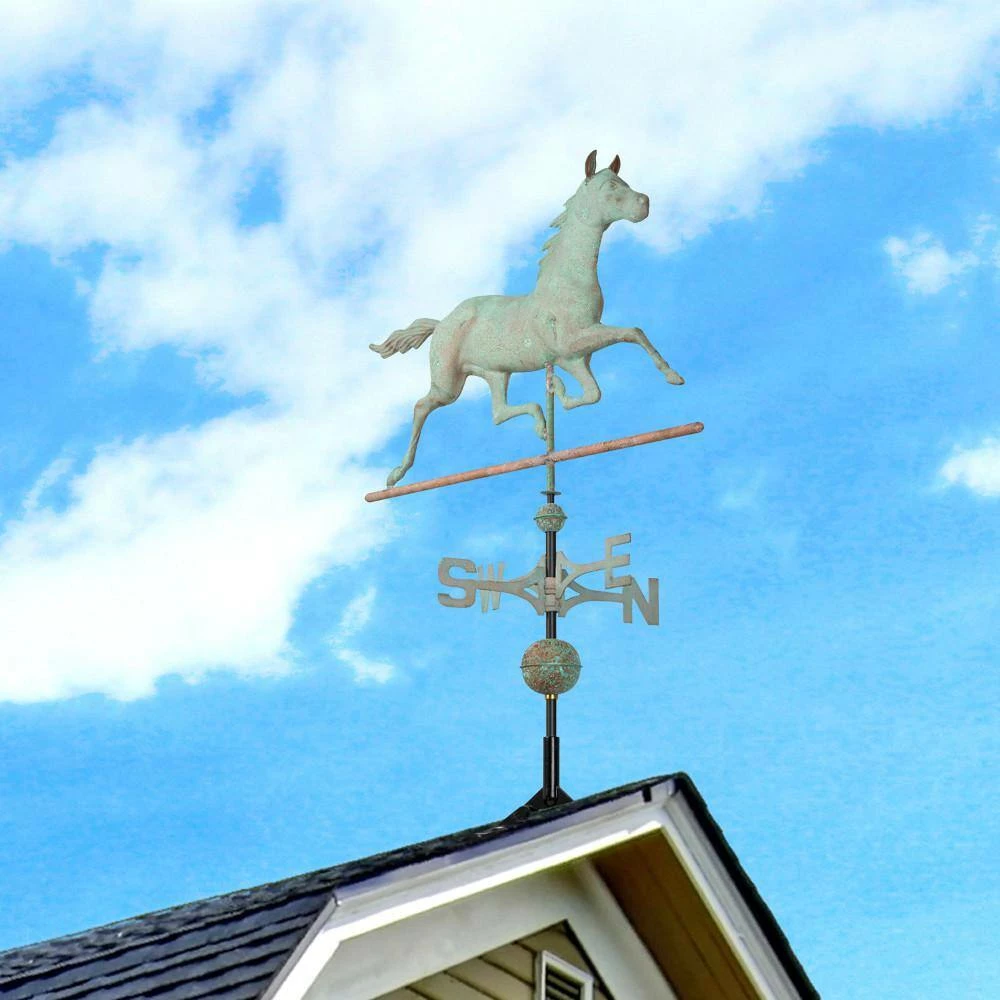 Whitehall Products copper weathervanes are a carefully crafted and meticulously detailed weather instrument that will provide a lifetime of enjoyment. Our fully-functional weathervanes with hand-hammered styling are crafted of copper and brass. The attractive oversized ornaments are available with an aged verdigris or polished copper finish. Each weathervane includes an adjustable roof mount base for easy installation.